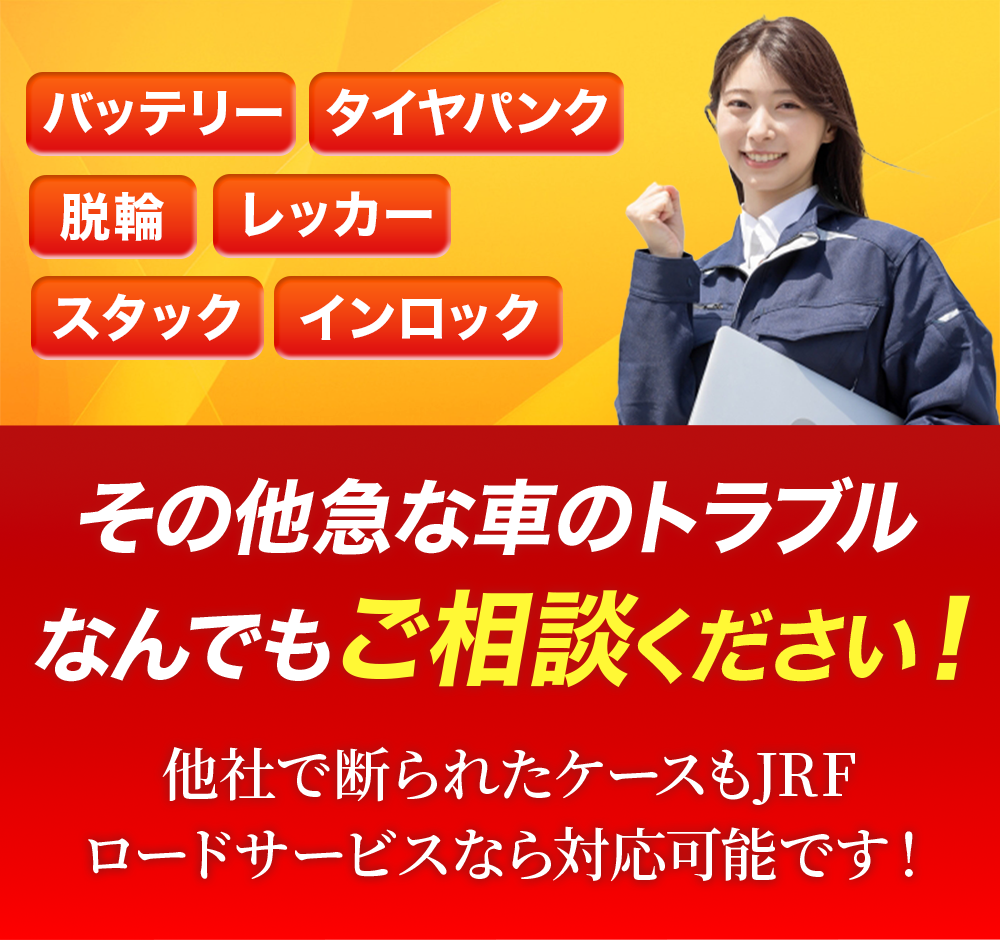 車が動かなくなってしまったのでロードサービス会社に電話するも、どこの会社にも断られてしまったり高額な費用がかかると言われ、どうすることもできませんでした。そんな中、JRFロードサービスには適正価格で対応してもらうことができました。自宅に車を送ってもらう際も同乗させてもらえたので、費用の節約にもなりました!他社では断れ続けていたので本当に助かりました。ありがとうございました! 帰れないんじゃないかとすごく不安でしたが、早く家にも帰れて、車もちゃんと直って大満足です!